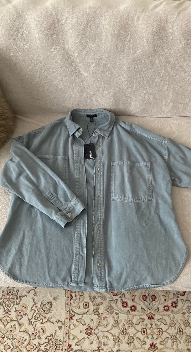 Gri renkte, düğmeli, uzun kollu, yakalı ve rahat kesim kadın denim ceket. Ön cepleri bulunur, günlük kullanıma uygundur. #mavi #ceket #gömlek #mavi