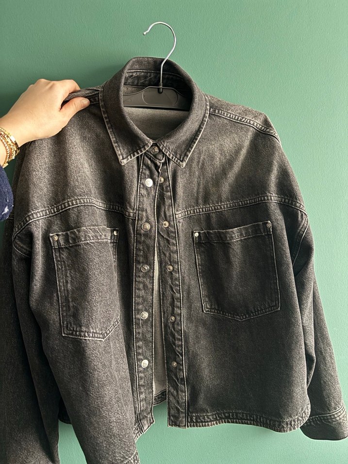 Gri Düğmeli Kadın Denim Ceket/Gömlek