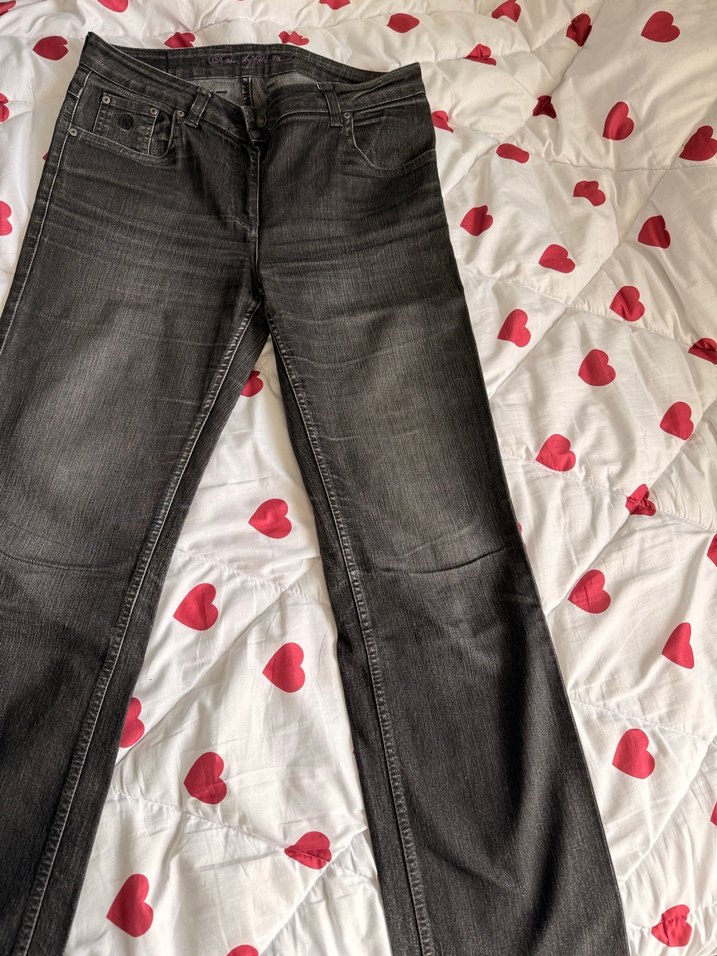 Gri renkte, düğmeli önden kapanışlı, normal midi boyda, regular fit kadın denim pantolon. Günlük sokak stili için uygundur.