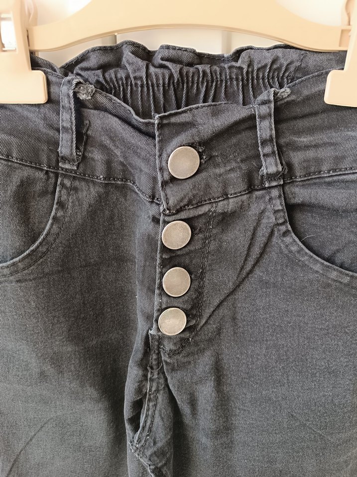 Gri renkte, düğmeli önü ve bol kesimiyle günlük kullanıma uygun kadın denim pantolon. Midi boyda, rahat ve desensiz tasarım sunar. 10 11 yaş uyumludur