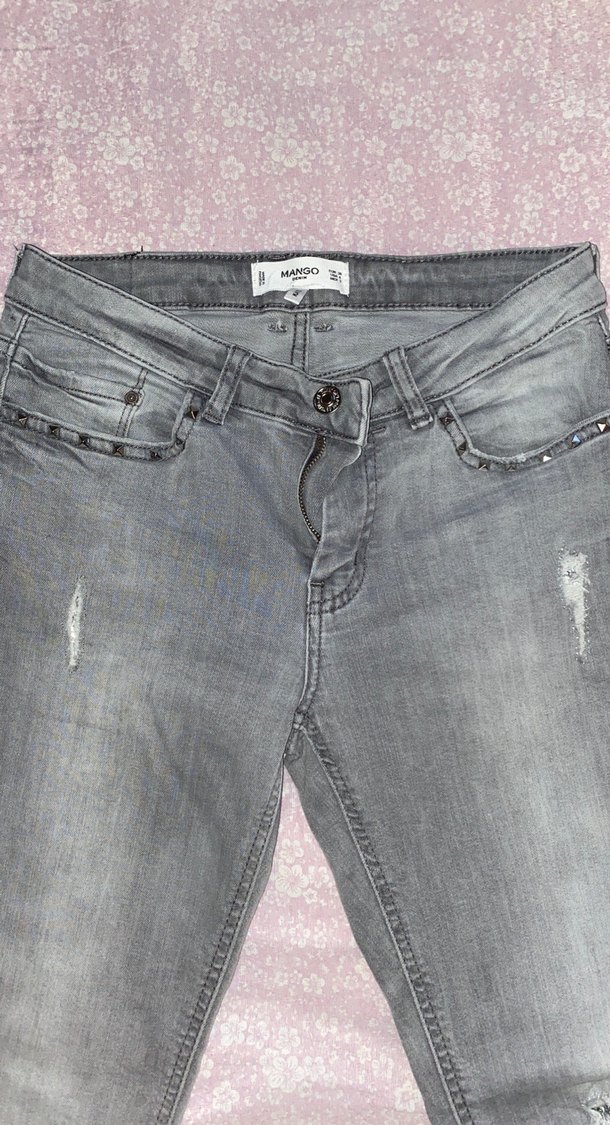 Gri renkte, düğmeli önden kapanışa sahip, normal midi boyda ve dar kesim kadın denim pantolon. Günlük kullanıma uygun sade ve normcore tarzda.