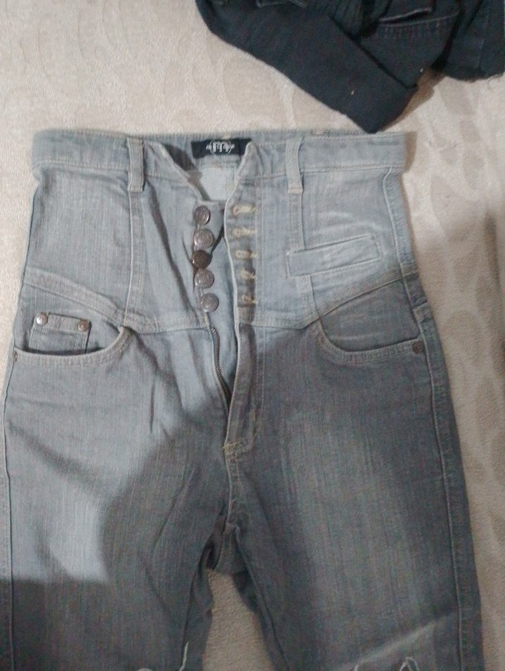 Gri Düğmeli Kadın Denim Pantolon