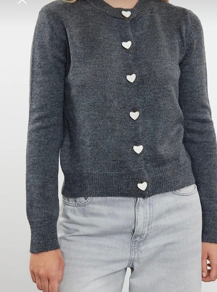 Gri Düğmeli Kadın Hırka