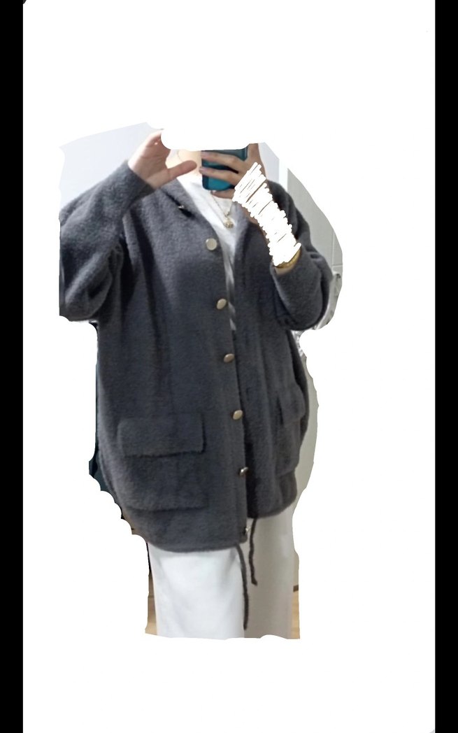 Gri düğmeli, bol kesim kadın kaban, yumuşak ve sıcak kumaştan, uzun kollu ve yakalı, günlük kullanıma uygun. hem şık hem spor duruşu ile cok guzel duruyor.sıfır urun