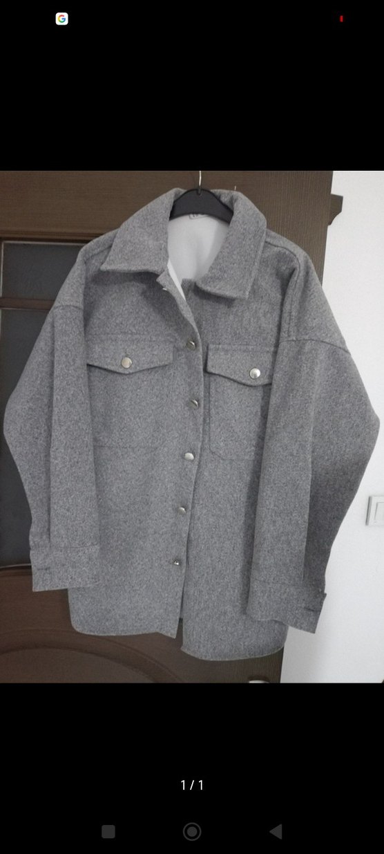 Gri düğmeli kadın kaban.Hiç giyilmedi