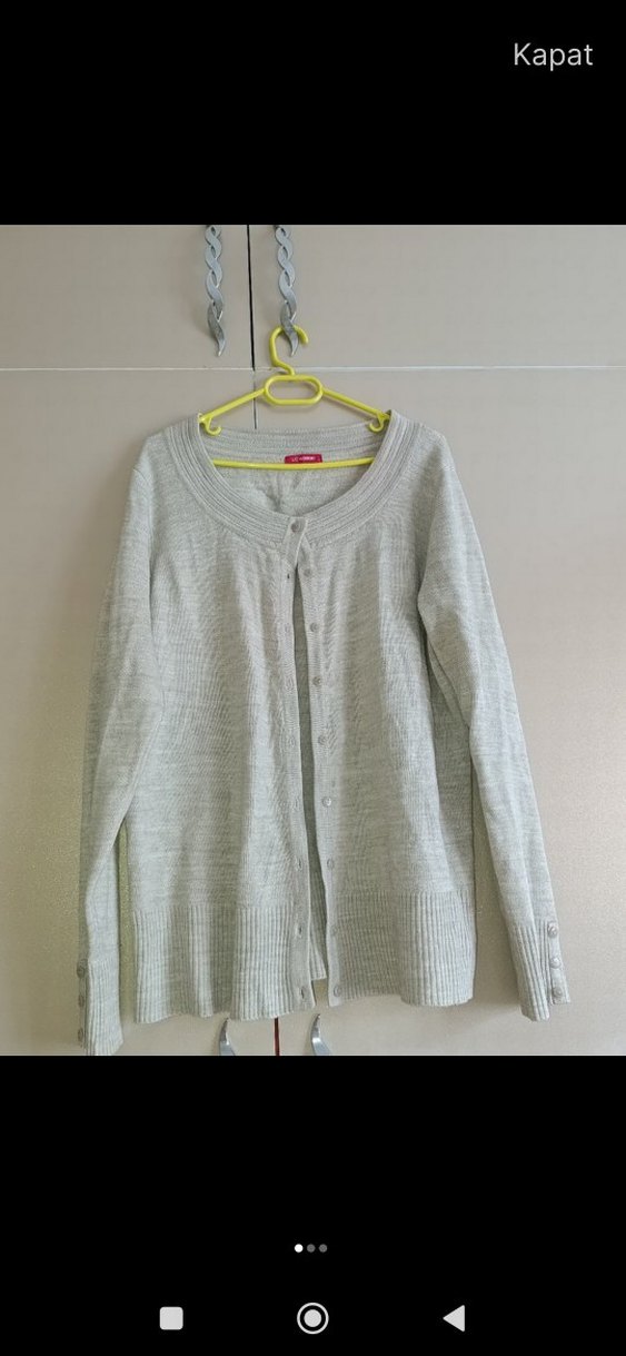 Yumuşak keten kumaştan, düğmeli ve uzun kollu gri rahat kesim hırka. Yuvarlak yaka ve midi boyda, günlük kullanıma uygun sıcak tasarım.