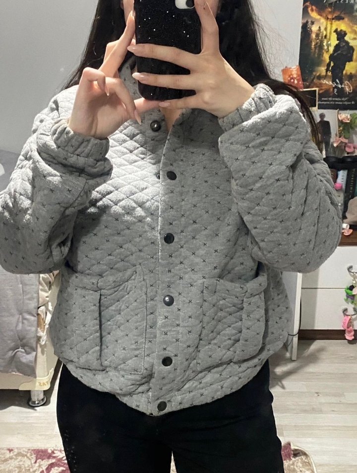 Gri Düğmeli Kadın Kışlık Midi Mont