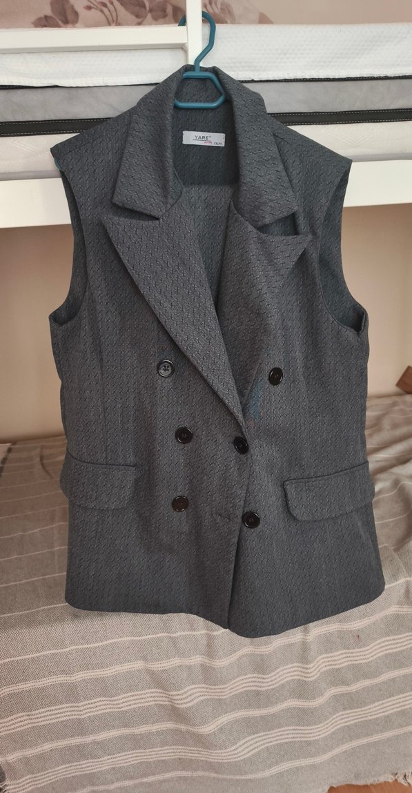 Gri Düğmeli Kadın kolsuz blazer takım