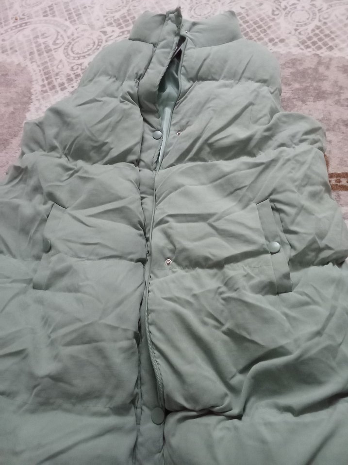 Gri renkte, düğmeli ön kapamalı, kolsuz uzun kadın montu. Gevşek kesimi ve yumuşak sentetik kumaşıyla rahat bir kışlık dış giyimdir.Beden sorunuz ❄️