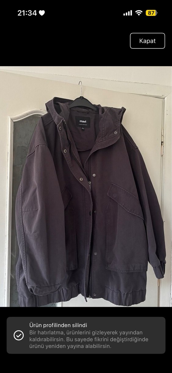 Gri renkte, keten kumaştan yapılmış, düğmeli, uzun kollu, normal boy midi kadın ceket. Salaş kesimi ve kesik yaka detayıyla sokak stiline uygun.mavi jeans kot ceket rengi antrasit s beden 2-3 kere kullandım ihtiyaç fazlalığından satıyorum