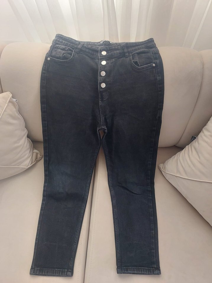 Gri Düğmeli Kadın Kot Pantolon