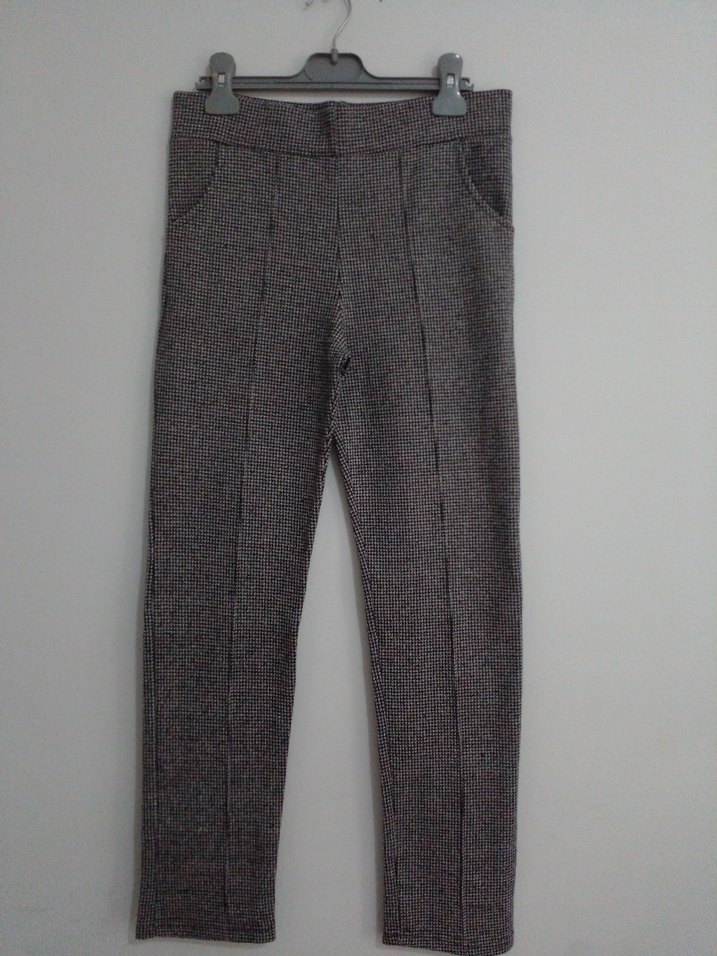 Gri Düğmeli Kadın Kumaş Pantolon
