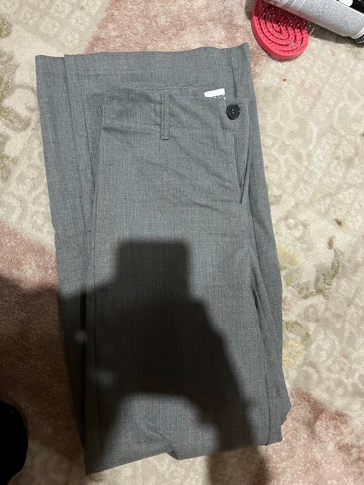 Gri Düğmeli Kadın Kumaş Pantolon