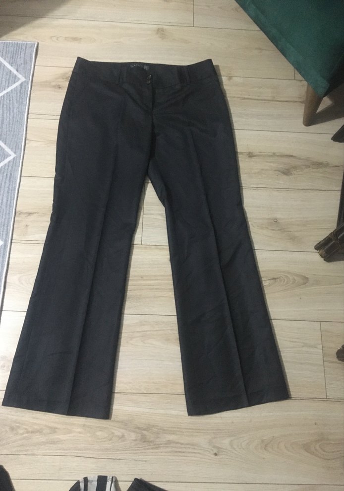 Gri Düğmeli Kadın Kumaş Pantolon