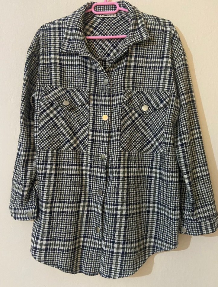 Gri düğmeli, uzun kollu kadın midi gömlek. İki cep ve kesik yaka detaylarıyla rahat kesim, günlük kullanıma uygun.