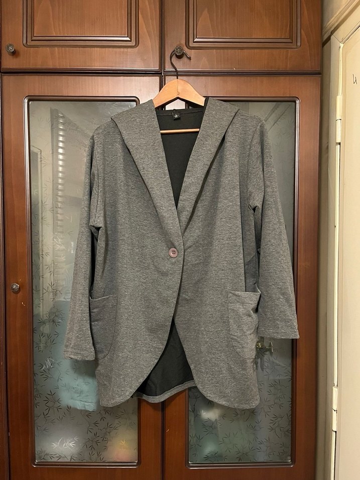 Gri renkli, düğmeli ve notched lapel yakalı kadın midi tunik Uzun kollu, rahat kesim ve yumuşak sentetik kumaştan üretilmiştir. Günlük kullanım için uygundur. İki koltuk altı arası eni 60 cm boy 80 cm