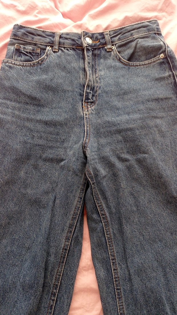 Düğmeli, bol kesim gri midi kot pantolon, günlük rahat kullanıma uygundur. son fotoğraftaki hariç bir kusuru yoktur, gerçekten çok güzel duruyor