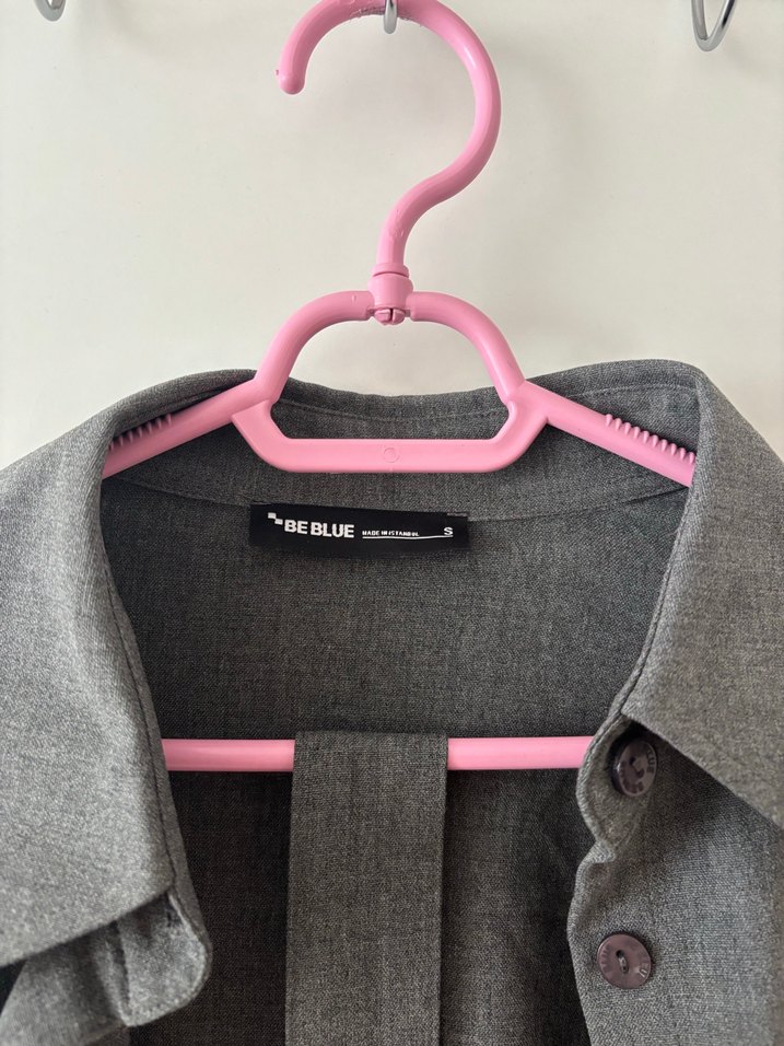 Düğmeli ve kesimli yakalı,oversize kesim gri kadın gömleği. Strappy kollu, midi boyda ve ofis kullanımı için uygundur. BEBLUE markalı. Bedeni s kalıbı geniş ben 38 bedenim dökümlü ve güzel duruyor. Artık kullanmadığım için satıyorum, çok iyi durumda az kullanıldı.