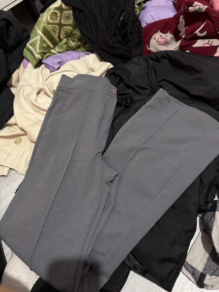 Gri düğmeli kadın tayt pantolon. Rahat kesimi ve sentetik kumaşıyla günlük kullanıma uygundur.