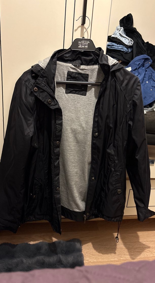 Düğmeli ön kısmı ve kırmalı yaka detayına sahip, bol kesim gri kadın yağmurluğu, günlük rahat kullanım için uygundur. ️