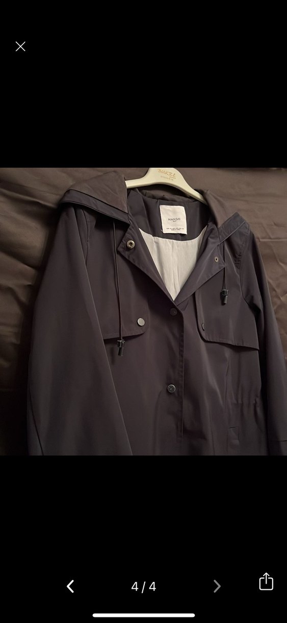 Gri renkte, düğmeli ve notched yaka detaylı erkek yağmurluğu. Sentetik kumaştan, uzun kollu ve rahat kesim, minimalist sokak stiline uygun.