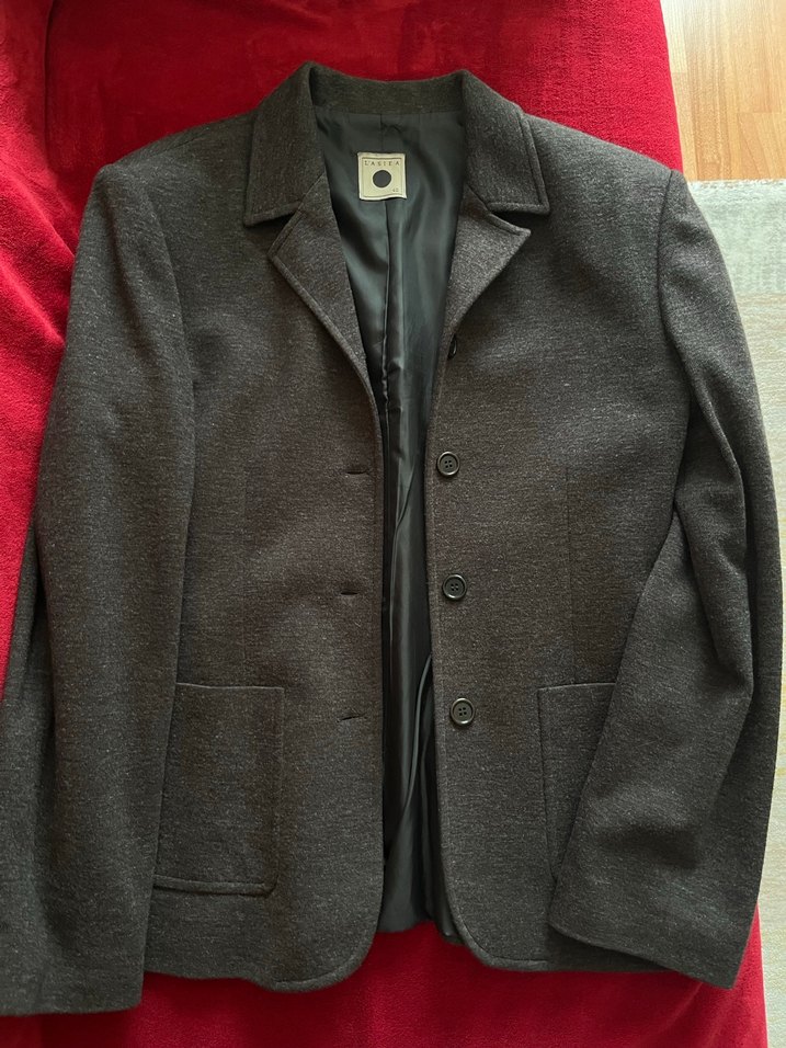 Gri yün kumaştan, kadın ceket. Uzun kollu, normal kesim ve iş ortamı için uygun. Kışlık bir cekettir bir kere giyildi bir sorunu yok