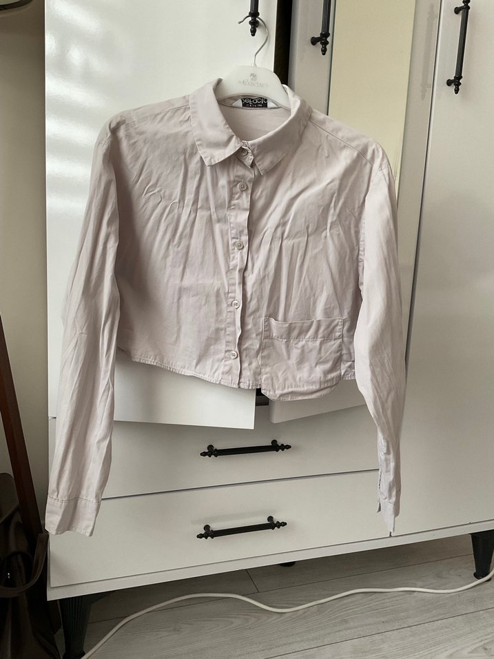 Bej keten kadın gömlek, uzun kollu, yakalı ve düğmeli önde. İyi oturan kesimi ve midi boyu ile günlük sokak stiline uygun, pastel tonlarda sade tasarım.