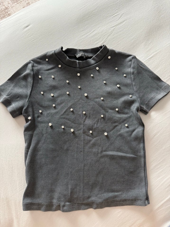 Gri Düğmeli Kısa Kollu Triko Tişört