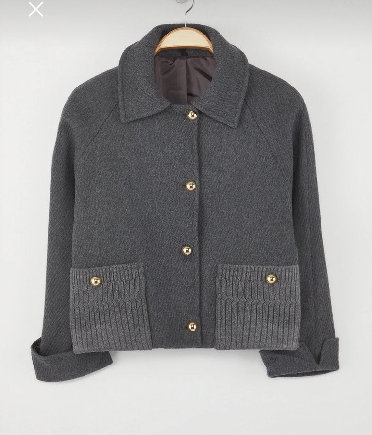 Gri Düğmeli Kısa Yün Kadın Ceket