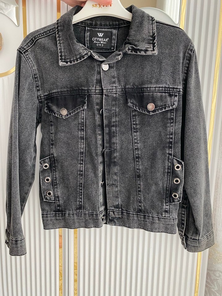 Gri Düğmeli Kız Denim Ceket