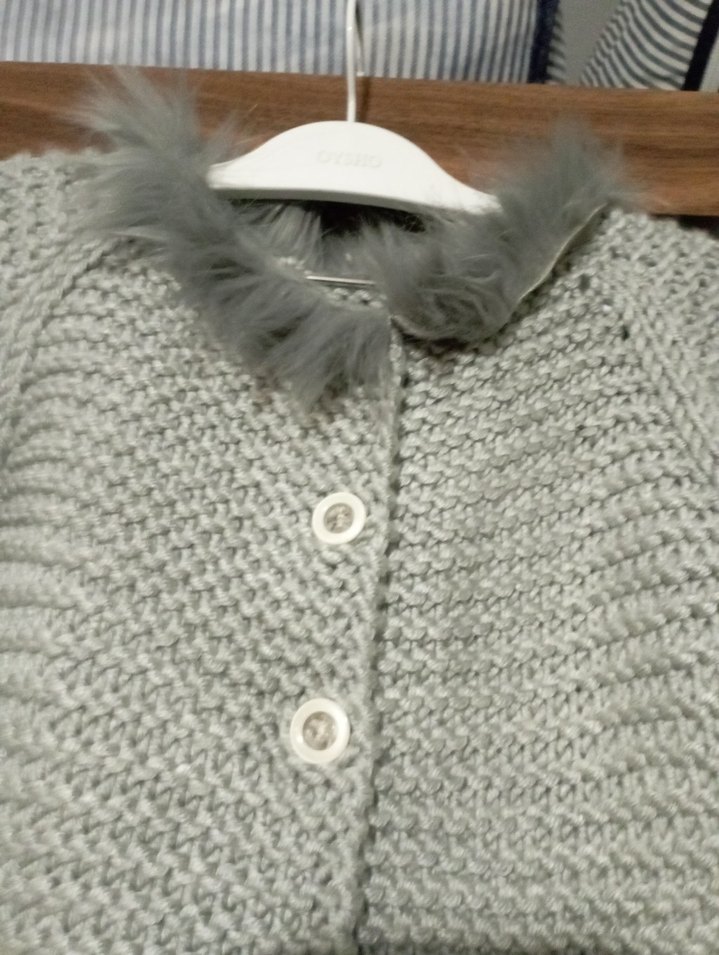 Gri renkli, düğmeli kız triko hırka. Uzun kollu, desensiz ve rahat bol kesimdir. Günlük kullanıma uygundur. 5-6 yaşa uygundur bir kaç kez giydirdim marka temsilidir