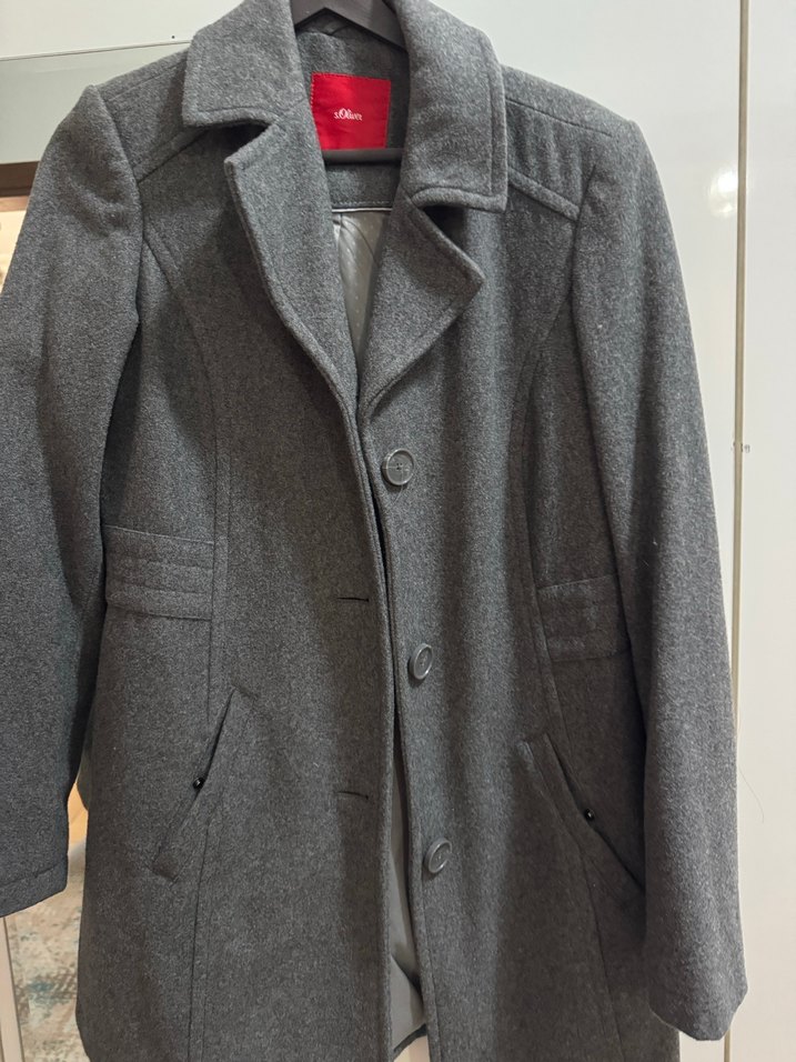 Gri renkte, düğmeli klasik tasarıma sahip kaban. İki cep ve yapılandırılmış yaka detayı bulunur. Sıcak tutan yumuşak kumaştan üretilmiştir.