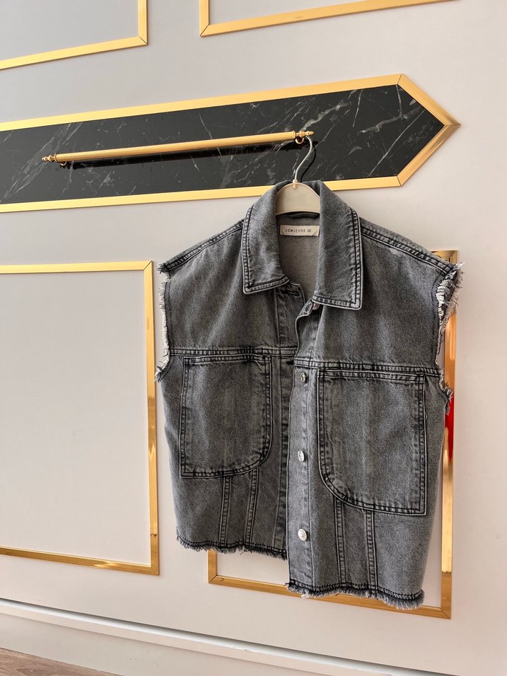 Gri Düğmeli Kolsuz Denim Ceket