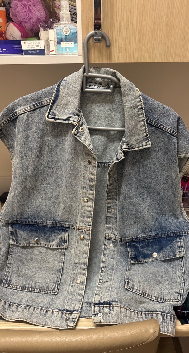 Gri Düğmeli Kolsuz Denim Ceket