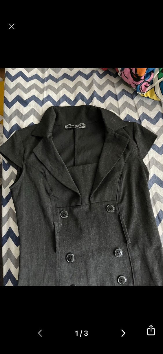 Gri Düğmeli Kolsuz Uzun Kot elbise vintage ofis