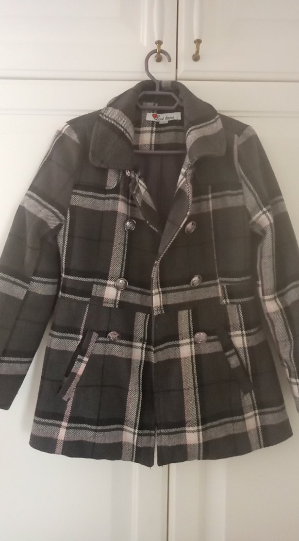Gri renkte, düğmeli ve yaka detaylı çocuk kabanıdır. Yumuşak ve sıcak kumaştan üretilmiş, midi boy ve uzun kolludur.