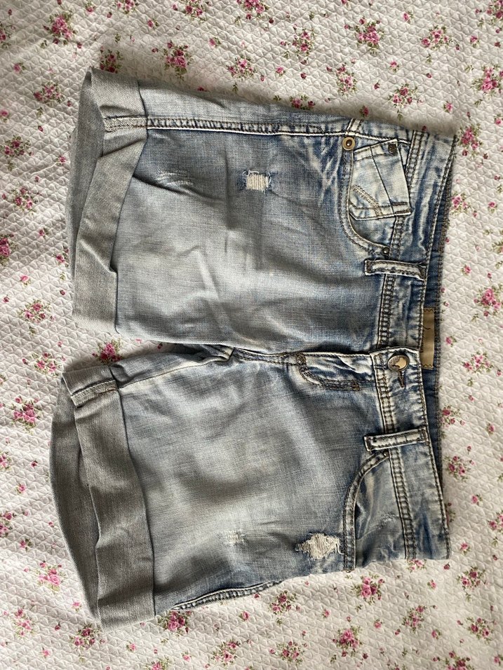 Gri renkli, düğmeli ön kısmı ve hafif batik desenli, rahat kesim midi uzunluğunda denim şort. Günlük ve sokak stiline uygun, yıpranmış detaylara sahip.