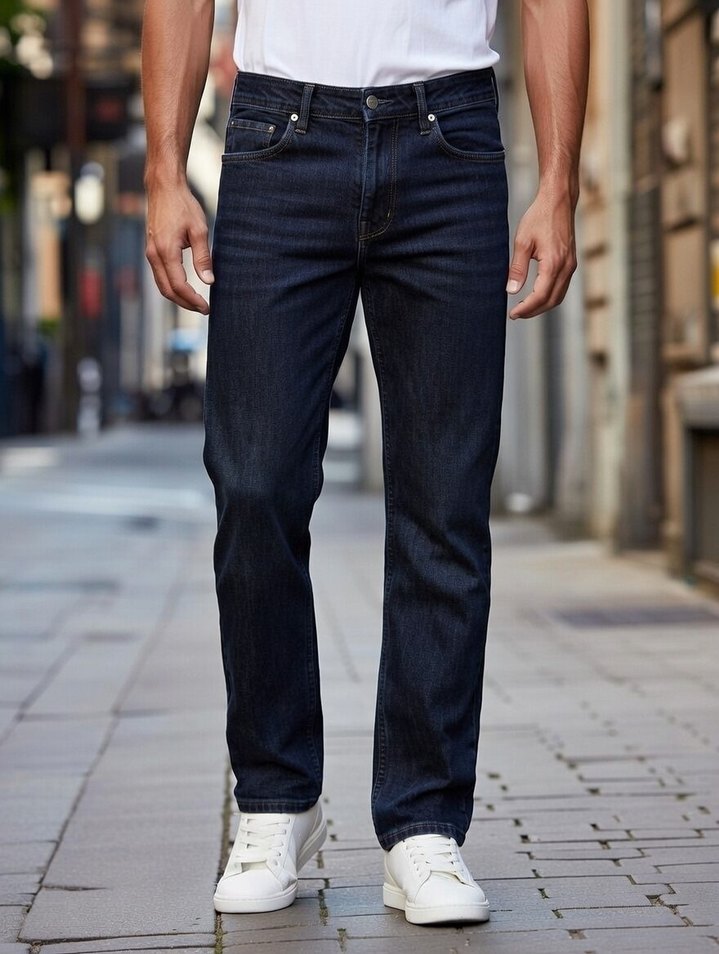 Gri renkli, düğmeli önden kapanışlı midi uzunlukta erkek denim jean. Rahat kesimi ve desen içermeyen tasarımıyla günlük ve sokak stiline uygundur.