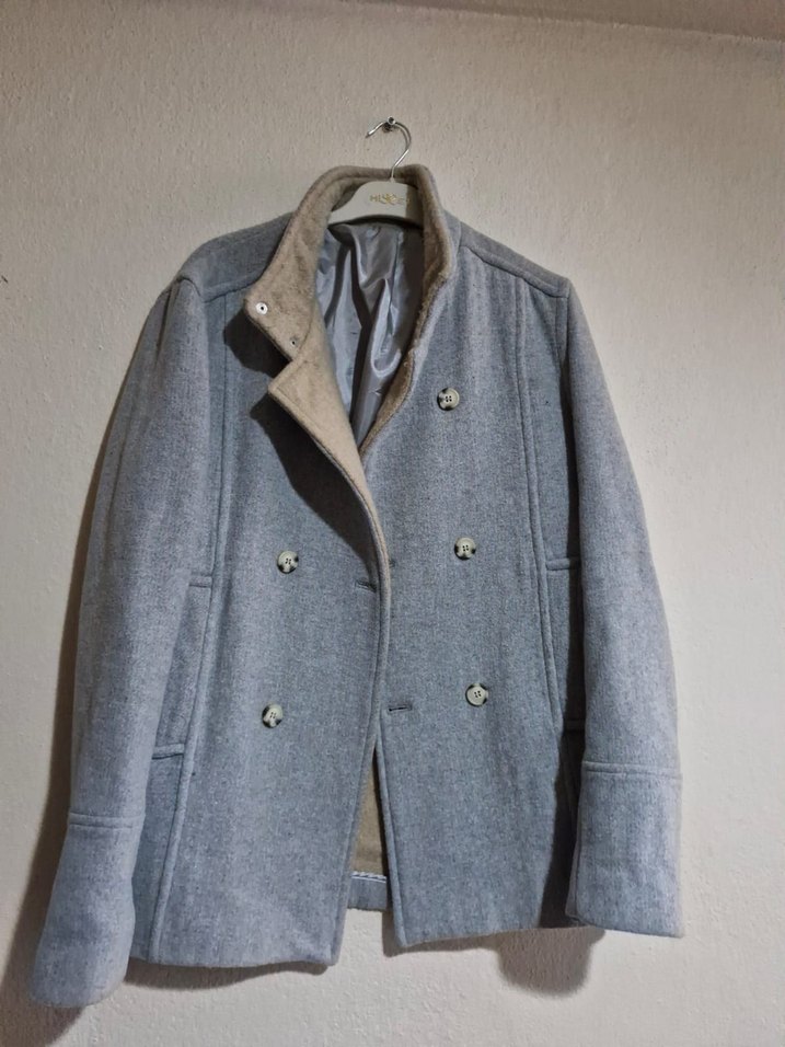Gri renkli, düğmeli ve yakalı kaban kol kisminda hafif tüylenmeler mevcut fiyati cok uygun tutacagım