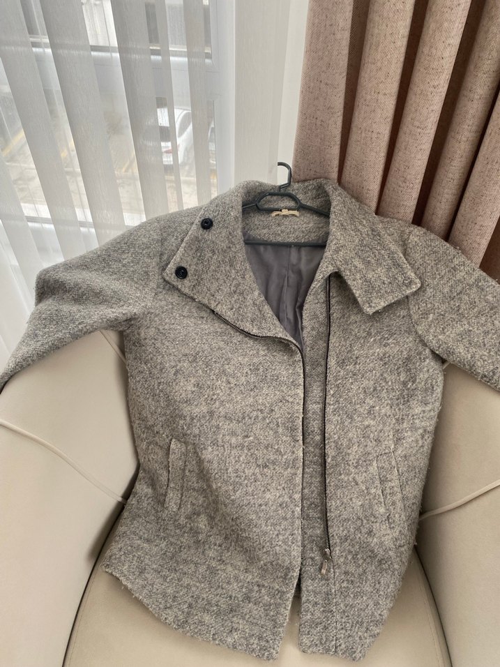 Gri Düğmeli Midi Kaban