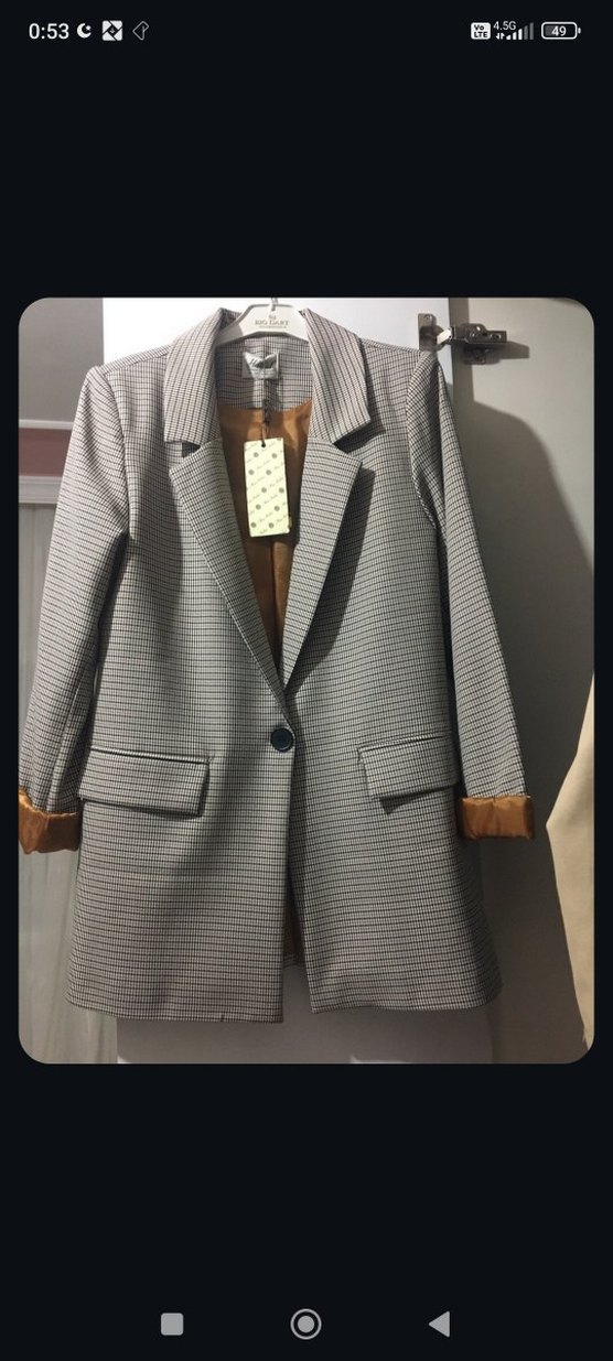 Gri Düğmeli Midi Kadın Blazer Ceket