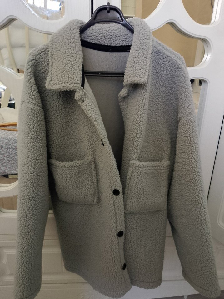 Bu gri kadın ceketi, düğmeli kapama ve uzun kollu, yakalı tasarıma sahiptir. Yumuşak ve rahat kumaştan, bol kesimli ve iki ön cepli, günlük sokak stili için uygun. 40 44 kadar rahat olur
