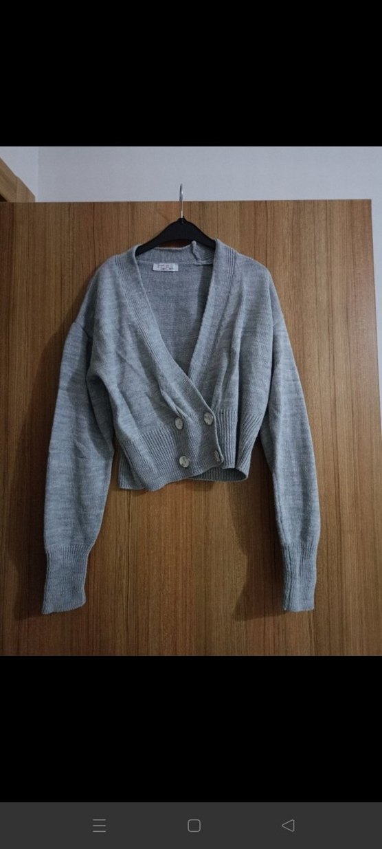 Gri renkli, düğmeli, uzun kollu, midi uzunlukta kadın hırka. Örme kumaştan, bol kesim ve yakası kesik yakalıdır. Rahat ve gündelik kullanıma uygundur.