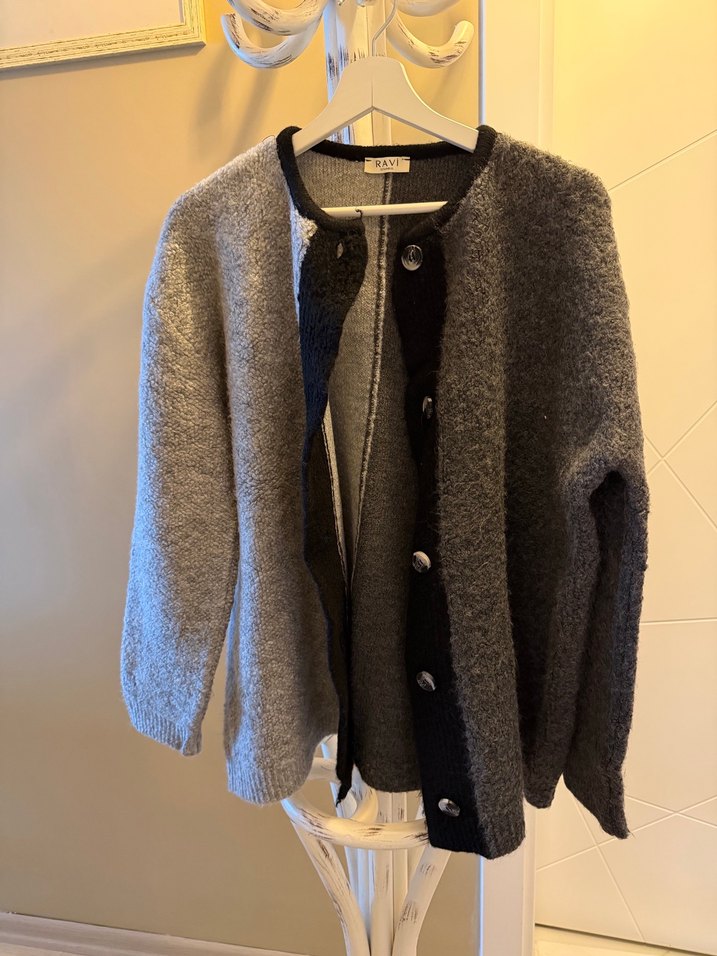 Gri Düğmeli Midi Kadın Hırka
