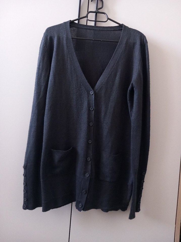 Gri yün hırka, düğmeli, uzun kollu ve V yakalıdır. Salaş kesimi ve cepli tasarımıyla rahat ve gotik tarz sunar. Not: Dolap temizliği nedeniyle uygun fiyata bırakıyorum ✅ Kargo: Hızlı gönderim yapılır