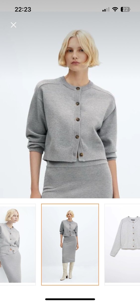 Gri yün hırka, yuvarlak yaka, uzun kollu ve düğmeli ön detaylıdır. Normal kesim ve midi boydadır, günlük kullanıma uygundur. 1 kere giydim hediye ürün küçük geldiği için satıyorum