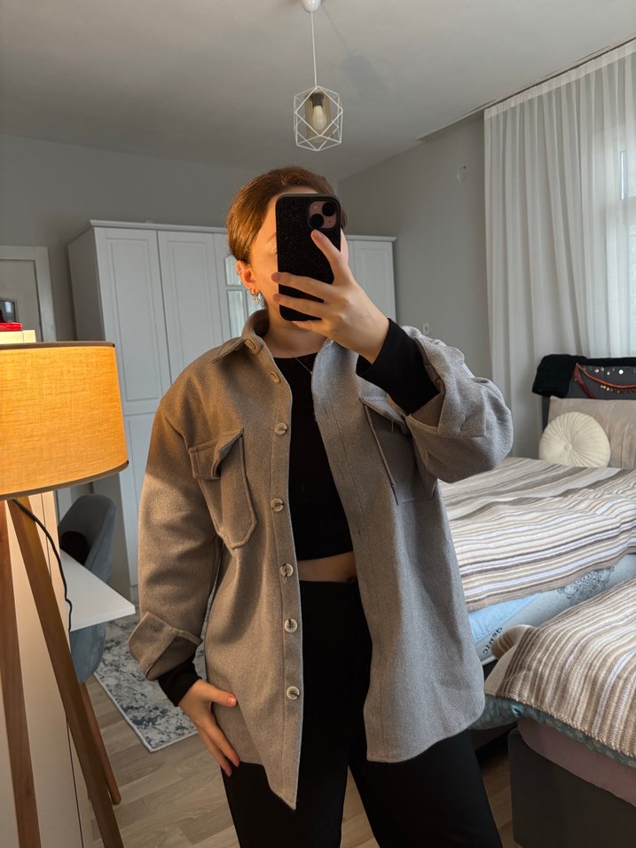 Gri midi kaban, düğmeli, uzun kollu ve cepli. Rahat kesimi ve yumuşak, sıcak dokusu ile günlük kullanıma uygun. Ürünü fazla kullanmadım geniş bir kalıp bol ona göre alınız