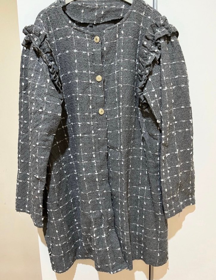 Gri Düğmeli Midi Keten Kadın takım tesettür