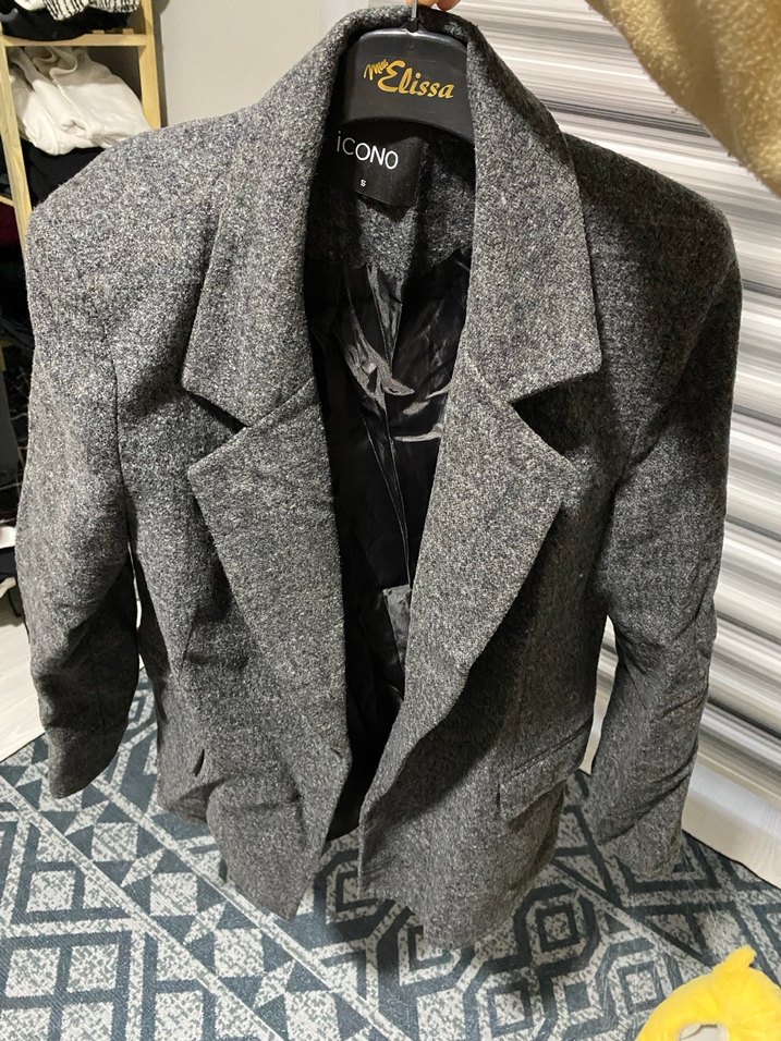 Gri Düğmeli Midi Yün Ceket