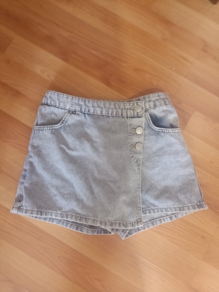 Gri Düğmeli Mini Denim Şort